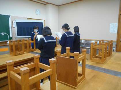 本日より、卒業式で披露する合唱曲の練習に入りました。楽譜を見ながら、スクリーンを通し、曲の全体を確認します。その後、3パートに分かれて練習を重ねます。