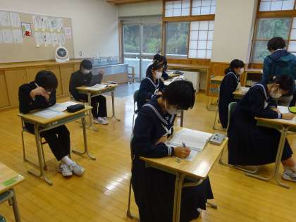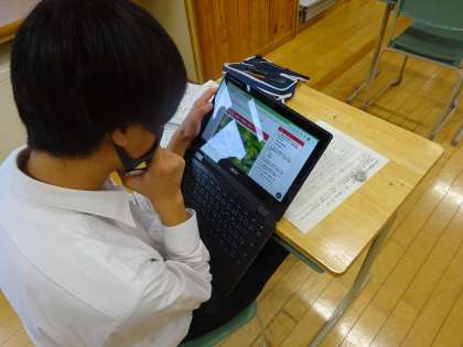 和歌を1つ選び、鑑賞文を書きました。端末を使い、和歌について調べながら、心情や情景、和歌の魅力について表現しました。