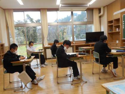 2学期末評価が返却され、教科担任の解説を聞きながら、出題された問題を、これまで学習した範囲の教科書やワークを見返して確認しました。生徒は、期末評価を通して、今までの学習内容を見直しました。