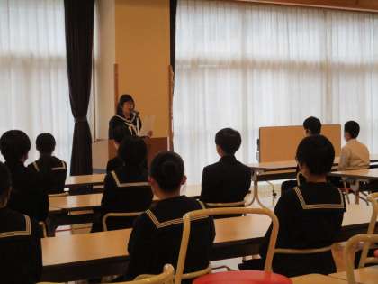 12月4日から10日は、人権週間です。人権週間を前に、生徒会長より全校生徒に人権について考えようと呼びかけました。来週は、自分自身を振り返り人権について改めて考える一週間にします。