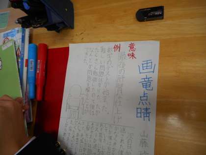 本日の学習課題は、「故事成語を使った体験文を紹介しよう」です。故事成語の由来、意味を調べた上で、自分の生活の中から、故事成語の意味を表すような体験文を、クラスで紹介します。