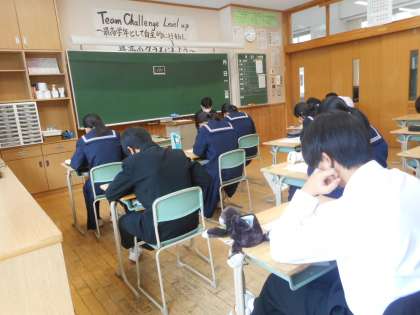 本日の理科の授業は、2学期最後でした。生徒は、本学期に学習した「地球と宇宙」の単元の確認テストに取り組みました。今後の学習に生かします。