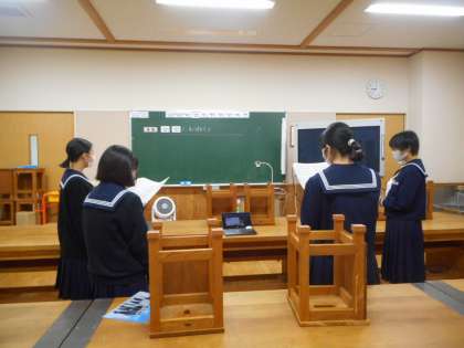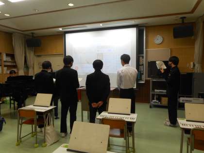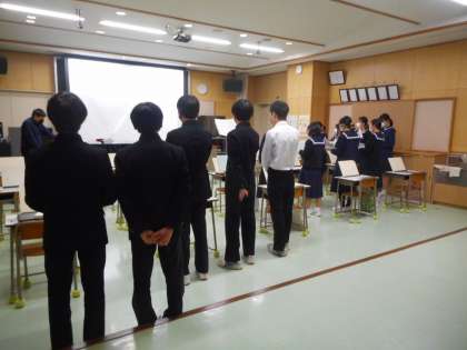 音楽の2学期最後の授業は、卒業式での全校合唱曲の練習です。3パートに分かれて練習し、アルトパートはピアノ伴奏で音階を確認します。最後の音合わせでは、3パートが同じ音階である小節を正確に合唱することに重点を置いて練習しました。