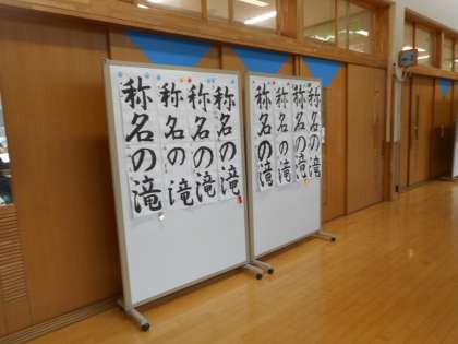 昨日行った書初大会の作品を、各学年の教室前廊下に掲示しました。