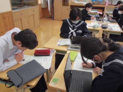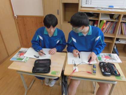 1年生は美術で塑像、2年生は理科で電流、3年生は社会で公害が環境に与える影響等について、それぞれ学習しています。