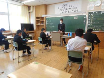 本日の授業は、立体図形の分類で、どこにも属さなかった「球」を確認した後、正多面体について、面や辺の数等を調べ、ワークシートにまとめます。