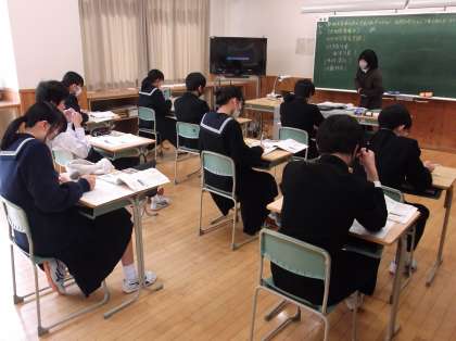 2年生は、道徳で、自然環境が話題の教材文を先生と一緒に読んでいます。