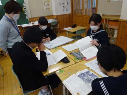 2年生は、「走れメロス」について、場面ごとのメロスと王の行動や言葉の変化について考えました。2つの班に分かれて活発に話し合い、理解を深めました。