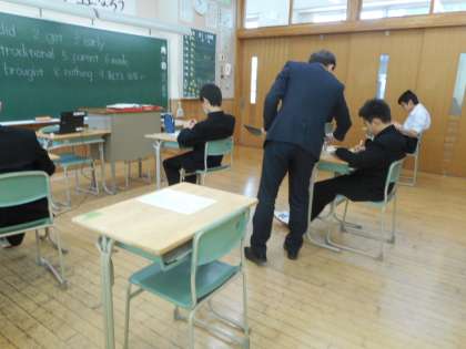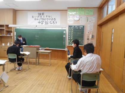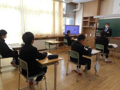 授業開始時に英単語の確認をした後、「旅先からの便り〜絵はがきの書き方」の学習をしました。教科書にある、メグがふるさとに住む祖母に出した絵はがきの内容から、英語で葉書を書くときの始めの挨拶や結びの言葉を学習します。