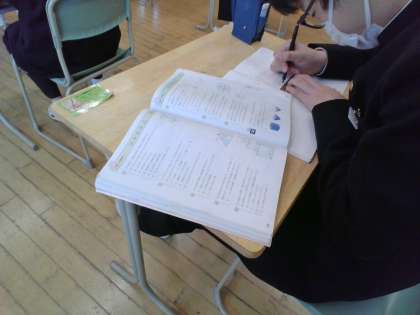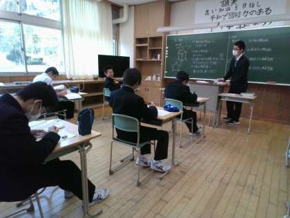 今日の授業では、学年末評価に向けて、各自で演習問題に取り組んでいます。問題を解けば解くほど「学習してきたこと」が定着します。頑張っている生徒の様子が見られました。
