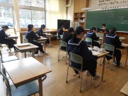本日2限に実施された数学の学力調査の解説プリントが配られました。生徒は、プリントに真剣に目を通しながら、理解を深めていきます。