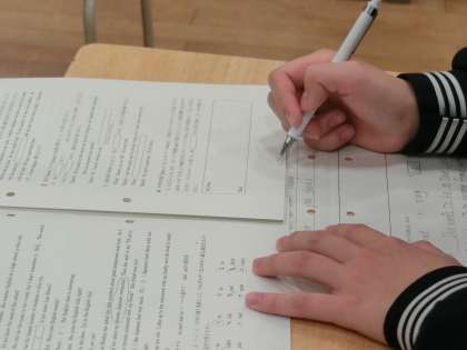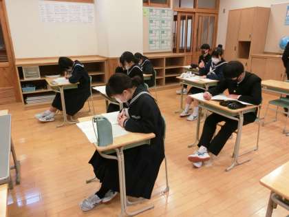 今週7日(木)8日(金)が県立高校一般入試です。プリントを使った模擬テストで最終調整です。