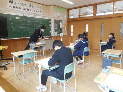 本日の授業は、四分位範囲と箱ひげ図の復習として、章の問題に取り組みます。得点の分布の様子を正しく表した文を選び、理由を考えてノートにまとめます。
