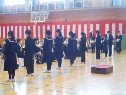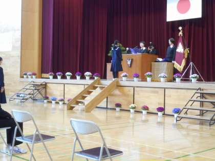 本日、第77回卒業証書授与式を、予定どおり執り行いました。卒業生は、3年間の思い出を胸に、在校生、保護者、来賓、教職員の見守る中、團校長先生から、卒業証書を受け取りました。退場時、卒業生は、保護者に感謝の言葉を贈りました。