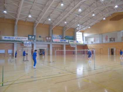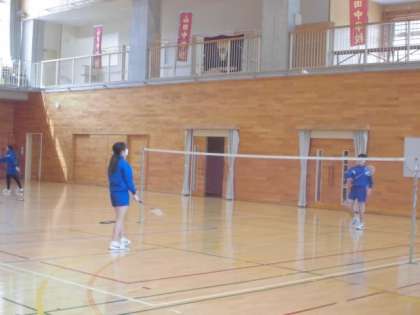 2年生の保健体育は、バドミントンです。攻めるスペースを考えながら、ゲーム練習をしています。