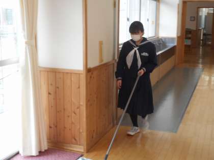 3年生が卒業して人数が少なくなりましたが、頑張って清掃に取り組んでいます。