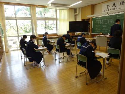 3年生の数学の授業は、展開の学習でした。3年生になると、問題の難易度がかなり上がります。一人一人が大変集中して学習に取り組んでいました。