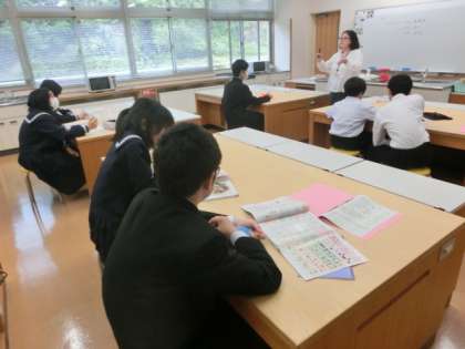 1年生の家庭科です。1日に何をどれくらい食べればよいかについて学習しました。