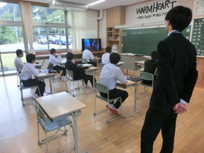 2年生の技術です。映像資料を見て、動物と水産生物の飼育(栽培)技術について学びました。