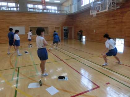 3年生の保健体育です。スポーツテストの反復横跳びを計測しました。