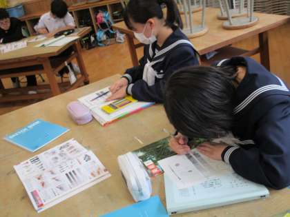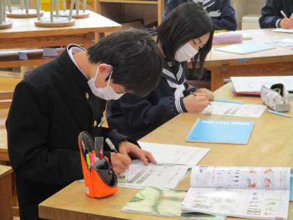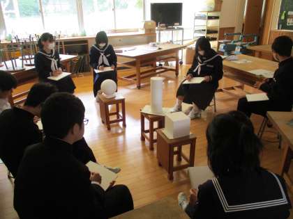 1年生の美術です。鉛筆の濃淡を使って平面や立体の明暗を表すことに取り組んでいます。鉛筆だけでグラデーションを描くのは難しく、書いたり消したりを繰り返しながら進めていました。