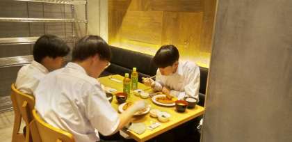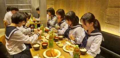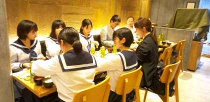 時間通りにホテルに到着し、夕食を楽しんでいます。