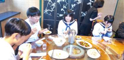 三宮での昼食は、中華のフルコースです。互いに取り分け合う姿が微笑ましいです。