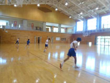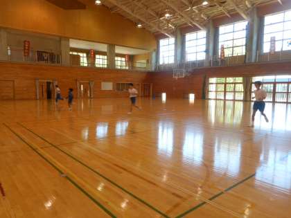 本日の授業は、体力テストの一環である「シャトルラン」です。男女に分かれて測定します。全国平均男子70回、女子60回を目指して精一杯頑張ります。
