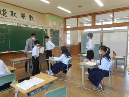 本日の学習は「累乗の計算」です。累乗の指数が、どの数を何回かけているのか注意深く確認することが、大切です。問題を解いた後、教科担任と確認しますが疑問が生じた場合は、もう一度質問します。