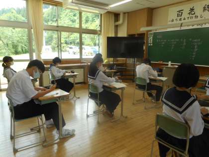 授業開始時に、前回の根号を含む乗除について、先生問題で復習しました。本日は、根号の中の数が、ある数の2乗の積になっていることを利用し、変形の仕方を学びます。習得した計算方法は、自発的に数学スキルで確認します。