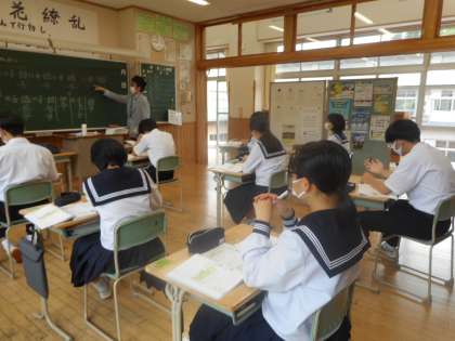 本日の授業は、「根号をふくむ乗法」です。まずは、有理化です。分母の根号の中の数字を2乗して、整数に直す計算方法を学習します。