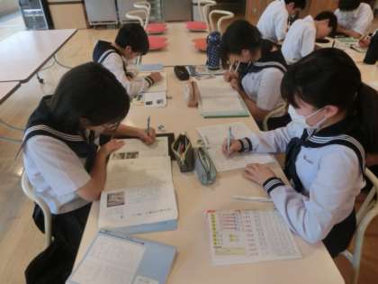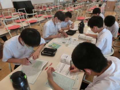 期末評価期間2日目。過ごしやすい気候のもと、本日も多くの生徒がランチルームに集まりました。短時間ではありますが、それぞれ自分で決めた課題に取り組みました。