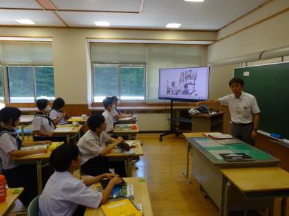 聞こえた英会話を、文を見ずに話す活動「シャドーイング」に取り組みました。繰り返し取り組み、会話の内容を理解しました。