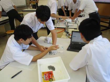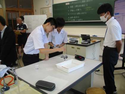 2年生の理科で、研究授業を実施しました。学習課題は「化学カイロについての課題を探究しよう」です。生徒たちは、実験を通して各班で考えた課題を分析し、科学的に探究することができました。