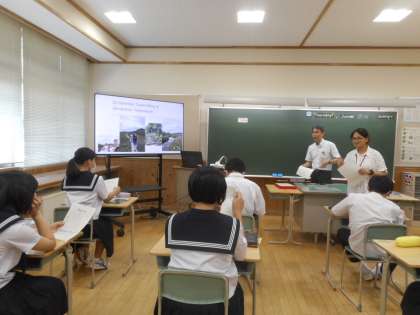 ALTを迎えての授業です。ALTから、週末の過ごし方について紹介がありました。八尾町の「白木峰」に登られた画像を見ながら、集中して説明を聞き取りました。