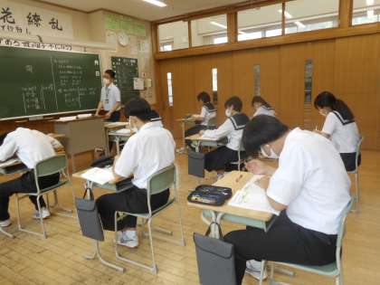 本日の授業は、「平方根の考えを使った解き方」です。二次方程式を変形した後、Xの平方根を求めるという考えで解を求めます。解が分数になった場合、分子分母が有理化できるかどうか忘れずに確認します。