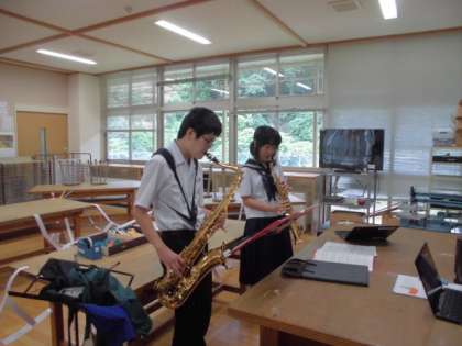 吹奏楽部は、自分たちの演奏を録音しながら練習をしました。運動部は最初は各部活動で基礎練習をした後、合同でトレーニングを行いました。