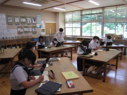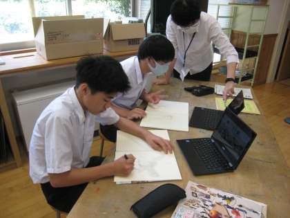 卓上に飾ることができる大きさの二曲一双屏風の下絵を描いています。クロムブックで検索した画像を参考にしながら下書きを描きました。
