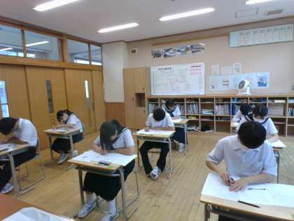 3年生は、昨日と今日の2日間で確認テストに取り組みました。これまでに学習した範囲の内容をどれだけ理解できているか確認しました。