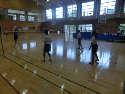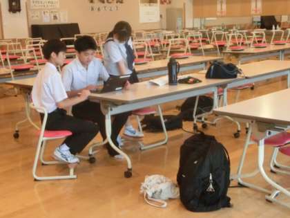 懇談会までの時間、1・2年生は部活動に励みました。今日は熱中症警戒指数が高かったため、外での活動を中止し、陸上競技部も体育館で活動しました。3年生は、ランチルームで学習しながら待機しました。