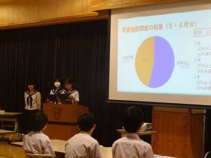 広報委員会は、読書冊数調査の結果を報告し、おすすめの本を紹介しました。