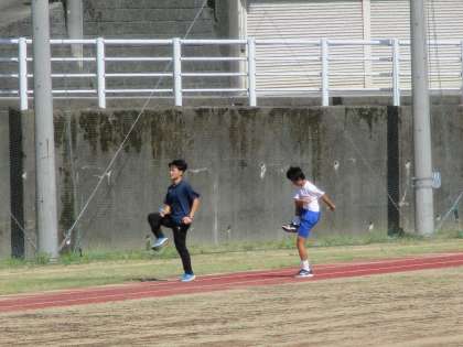 生徒たちと一緒に部活動顧問も汗を流し、基本動作を繰り返し練習しました。