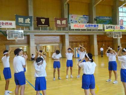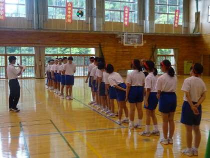 6限に全体練習を行いました。前半は、100m走、綱引き、選抜リレーの並びを確認しました。後半は、団ごとにエールを練習しました。
