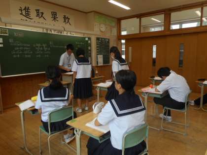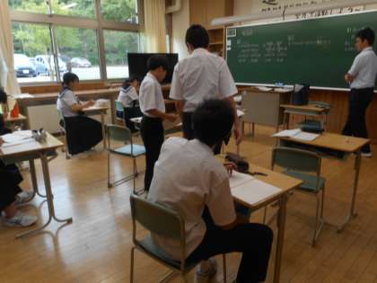 本日の授業は、「いろいろな方程式」です。基本問題から章の問題A、章の問題Bへと難易度の高い問題へ進んでいきます。理解できていない問題は教科担任と確認します。