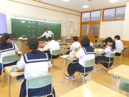 始業時、明日から始まる中間考査内容について、確認しました。本日の授業は、三人称単数現在形のルールについて、学習します。主語によって変化する動詞の3つパターンを教科者本文で確認します。