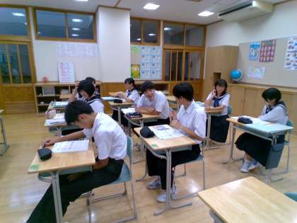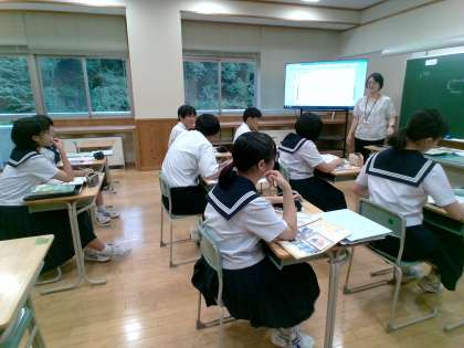 ラジオの災害情報を聞き、内容を確認しました。その後、どう行動するべきかについて互いに伝え合いました。