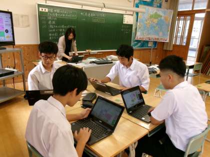 中国、四国地方の人口の変化を学んだ後、山田地区の地域おこしについて考えました。