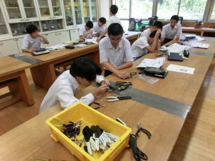 今日の課題は、「安全点検をしよう」です。エネルギー変換の技術について学習した後、安心テーブルタップを製作しました。
