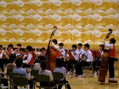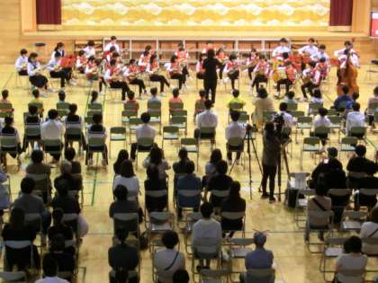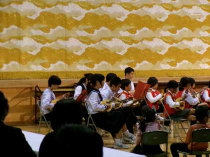 有志の中学生は、小学校高学年によるマンドリン演奏にゲスト出演しました。夏休みから個人練習を積み重ねてきた成果を存分に発揮する演奏で、高学年の発表に華を添えました。