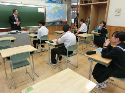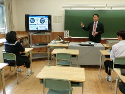 北陸税理士会富山支部より税理士の住吉さんを講師に招き、税に関心をもち正しい理解を深める趣旨で、本日3限に3年生を対象とした租税教室を行いました。